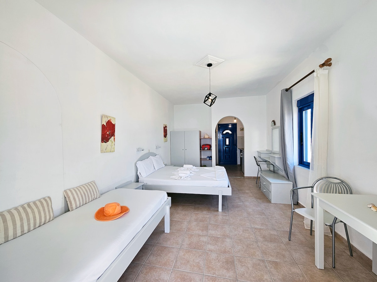 Relax in the vibes of a fishing village at a spacious modern island studio apartment. Great views to the marina and short walk to village and the beach. You will not need a car as you can get your groceries, and fresh baked bread from the near village stores. Enjoy a large variety of restaurants and bars just in 2-3 minutes walk. Can drive to Limionas Beach and Psili Amos beach in 10 minutes. Very quiet and relaxing place to re charge your batteries and enjoy summer.