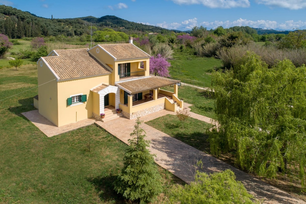 La autenticidad del entorno circundante y la casa, edificio de piedra de 200 años de antigüedad, nos inspiró a crear un espacio hermoso y funcional, lleno de luz, colores y pájaros cantores, que salen desde las puertas abiertas del balcón para pasar.Las increíbles vistas desde el patio y el jardín, hasta la superficie del mar y las verdes colinas, sanan y calman.Ideal para los visitantes que buscan el lado genuino de la isla. Cerca de la montaña, playas, (10 minutos en coche), ciudad de Corfú (25 min