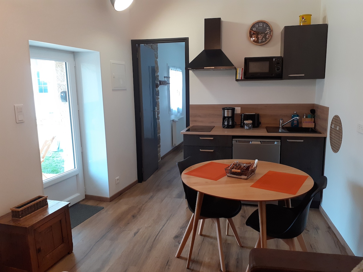 Ideal familia de 2 niños, extensible a 5 personas. Este estuche de piedra en 2 niveles, totalmente pensado y renovado por Joël y Françoise, con mucho gusto, mezclando madera maciza y contemporánea en la comodidad y optimización de los espacios. Saboreará su frescura en verano, su suave calor en los fríos del invierno, en una calma absoluta; con terraza y jardín privado. Piscina privada, abierta bajo petición de 15:00 a 20:00, compartida con la habitación de huéspedes y los propietarios.
