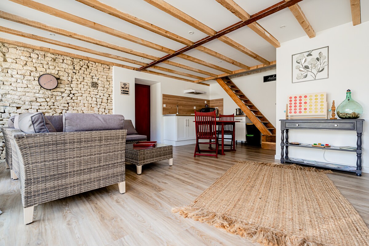 Relájese en este alojamiento tranquilo y elegante alrededor de una pequeña ciudad con carácter llena de encanto que hemos renovado por completo en 2022. El alojamiento se encuentra en un callejón sin salida. Estará a pocos pasos del pueblo con panadería, tienda de delicatessen, supermercado, restaurante, bar, jabonería, peluquería, esteticista y la oficina de turismo (abierta en verano). Nuestro pequeño municipio le ofrece varios paseos para descubrir esta encantadora ciudad.