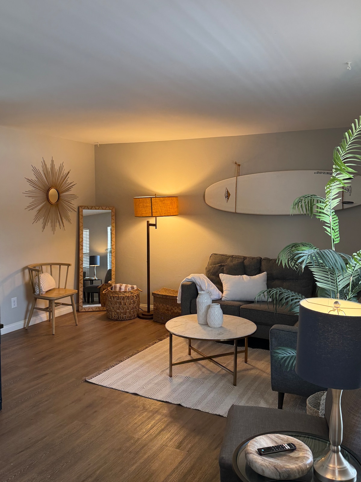 ¡Ubicación, ubicación! Nuestro histórico y encantador bungalow de fila de surf está idealmente ubicado, con un hermoso espacio de trabajo y un patio vallado para tu perro. Cuenta con aire acondicionado central y se encuentra a 5 minutos a pie de la playa o de la calle principal del centro de la ciudad, al tiempo que se encuentra en el límite de la artística Funk Zone de Ventura. Cafeterías, bares de vinos, cervecerías y restaurantes están a solo 100 pies de distancia. Disfruta del increíble clima de Ventura durante todo el año y de su vibrante cultura, pero deja tu coche en la entrada; no es necesario conducir durante tu estancia.