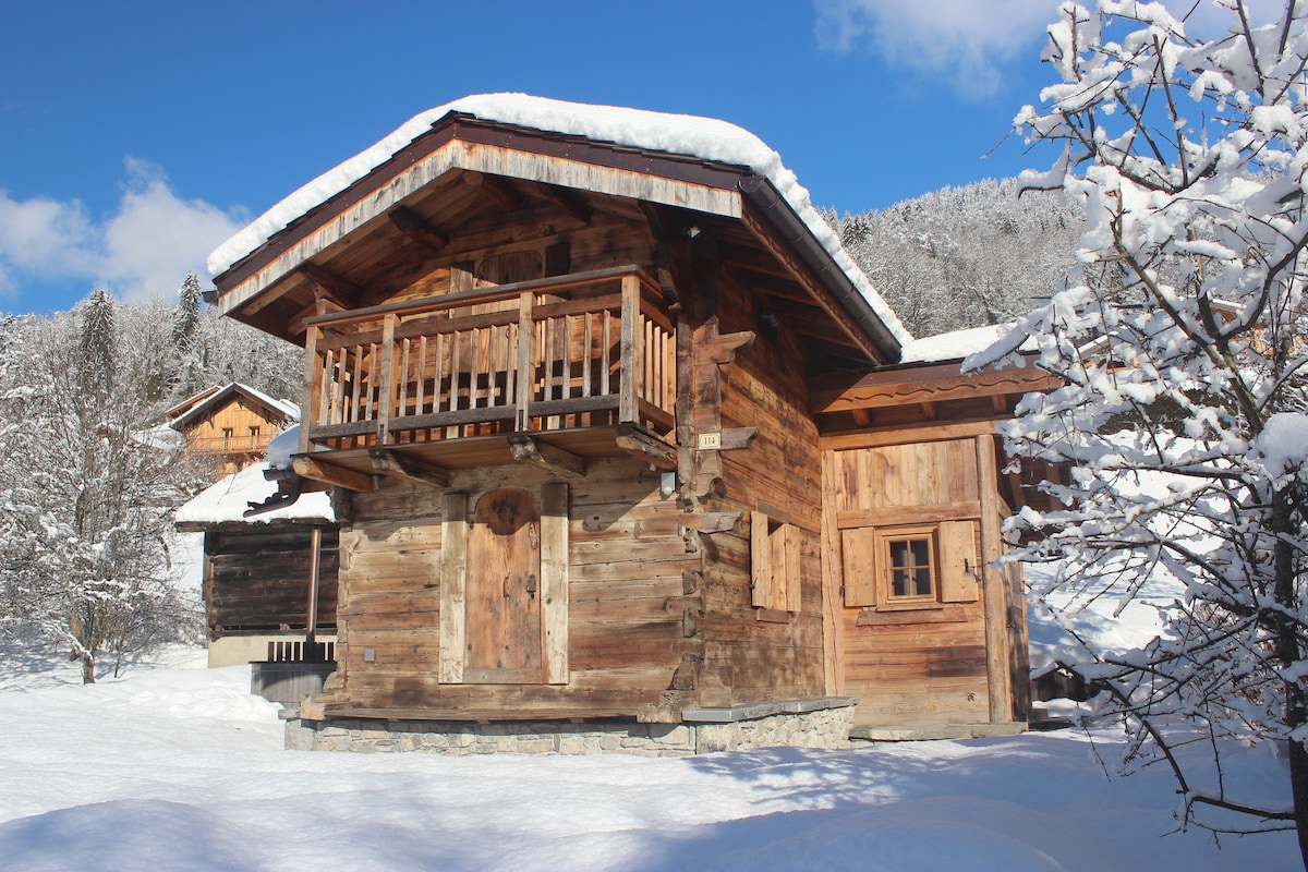 mazot típico frente al mont blanc a 15 minutos de chamonix