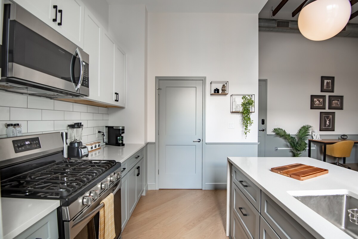 Este loft tipo micro estudio de nueva construcción se encuentra en el corazón del centro de Birmingham. Los huéspedes disfrutarán de encimeras de cuarzo, cocina de gas, lavadora y secadora, ducha sin marco, suelos de madera y todos los toques de diseño, incluidas puertas de granero y paredes de ladrillo visto. La unidad está a poca distancia a pie de restaurantes de la zona, Regions Field, Children's Hospital, Rotary Trail, Good People Brewery y mucho más. El edificio Macaroni Loft incluso cuenta con un balcón en el segundo piso. ¡Ven a reservar tu estancia con nosotros hoy mismo!