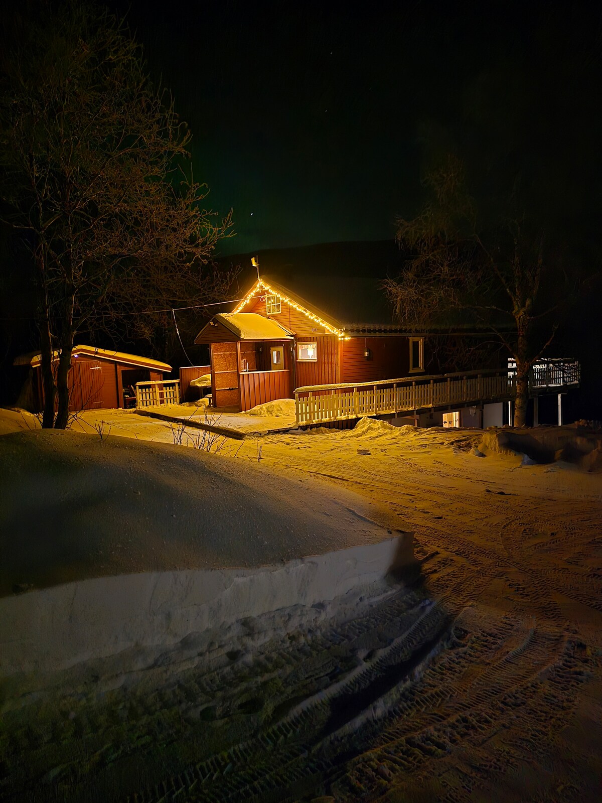 Cozy cabin on a mountain in Senja, surrounded by threes. Clean, quite modern, with a big kitchen, comfy beds, and fast - stable Wi-Fi. Near Ånderdalen Park (5 min) and the coast (2min). Great for auroras and hikes. Host is friendly and helpful, clearing snow and replying fast. Parking onsite. Perfect for couples or small groups:))