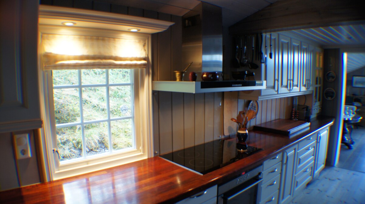 Cabaña de madera noruega clásica + anexo en las montañas de Lehøvd, Valdres. Gran vista de Grønsenknippa y alrededores junto al lago Syndin. La cabaña está aislada en una zona tranquila sin muchas otras cabañas alrededor. Hay kilómetros de pistas de esquí justo afuera de la puerta. En verano está en el centro de la ruta de ciclismo de montaña. Hay muchas oportunidades de senderismo, pesca, natación y kayak en Sørre Syndin y Hamriskjedn. Mucho espacio a tu alrededor al aire libre para una tienda de campaña/ hamaca o parrilla.