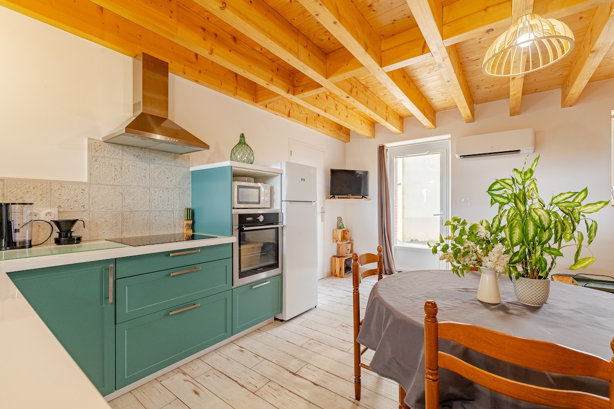 En el centro de Maulévrier a 100 metros del Parque Oriental y el castillo Colbert, el alojamiento está idealmente situado para descubrir el Puy du Fou, los lagos y bosques, las orillas del Loira, la costa de la Vendée y los viñedos de Anjou. Este antiguo taller ha sido completamente renovado con materiales de calidad, conservando el estilo industrial y aportando el carácter cálido de la madera.
