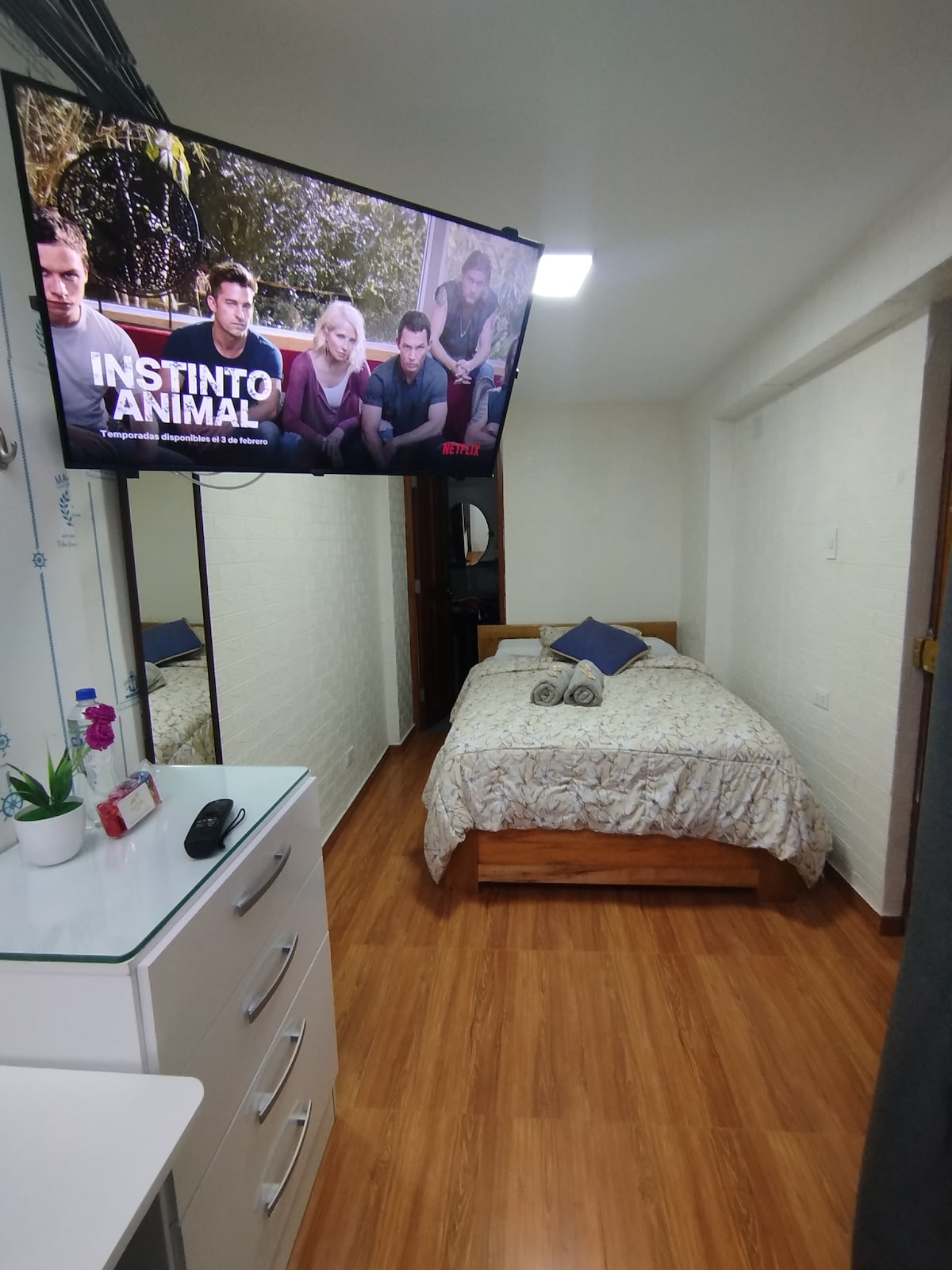 Monoambiente cómodo y seguro cerca al Óvalo Papal. Equipado con una cama de dos plazas y dos camas individuales, ideal para hasta cuatro personas. Cuenta con TV de 55 pulgadas con acceso a plataformas de streaming y WiFi de alta velocidad. Ubicado dentro de un condominio privado con vigilancia permanente y videovigilancia. Excelente ubicación con acceso rápido a transporte, comercios y puntos de interés.