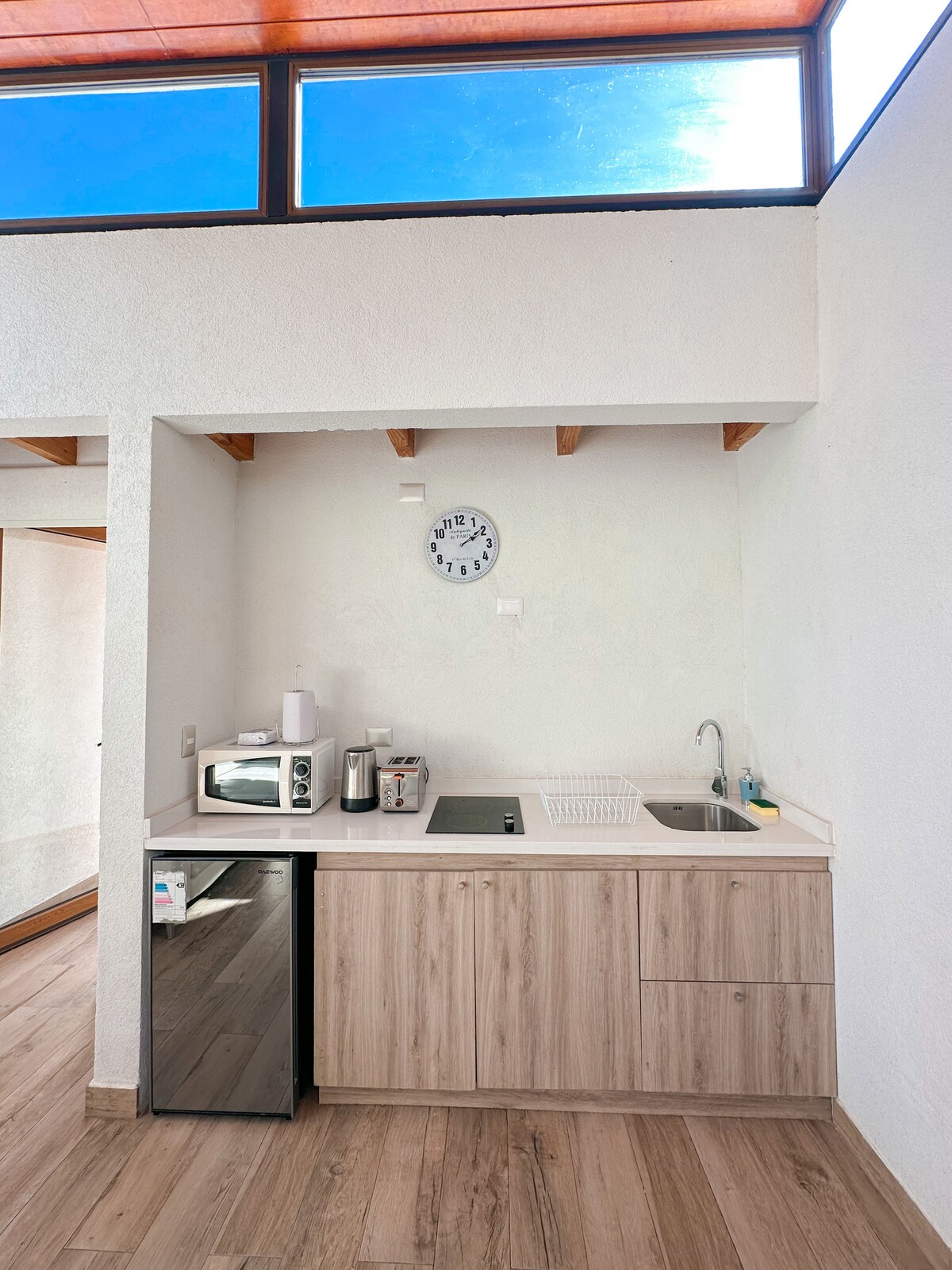 La Cabaña es pequeña, está completamente equipada para que los huéspedes puedan cocinar si lo desean. Consta de amplios ventanales para observar el esplendor del Valle. A metros de la cabaña se encuentra la piscina y tinaja de madera tipo jacuzzi . La mayoría de las noches puedes observar el cielo estrellado característico del lugar disfrutando de la tinaja de agua caliente .Disfruta de una energética cama de cuarzo y de un rico desayuno. No se permiten mascotas.