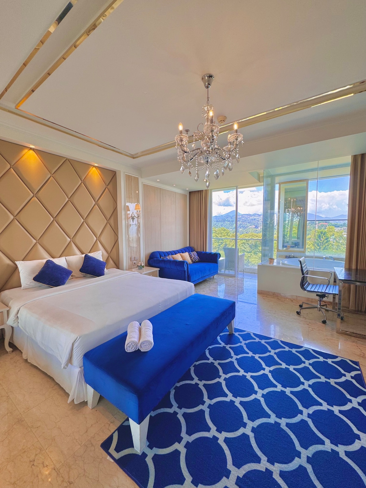 🌟 Suite Deluxe Diamante con jacuzzi y decoración Art déco 🌟 Nuestra suite está ubicada en el nivel 8 del Art Deco Luxury Hotel & Residence, con una decoración moderna y un estilo clásico que ofrece la mejor experiencia de lujo. Esta suite ofrece un elegante living y un jacuzzi privado en el balcón con espectaculares vistas de Bandung. La ubicación está cerca de Dago y los principales destinos turísticos de Bandung. Perfecto para parejas, personas que viajan solas y grupos pequeños. Consulte nuestro perfil para unidades de 1 a 4 dormitorios y villas de lujo en Bandung