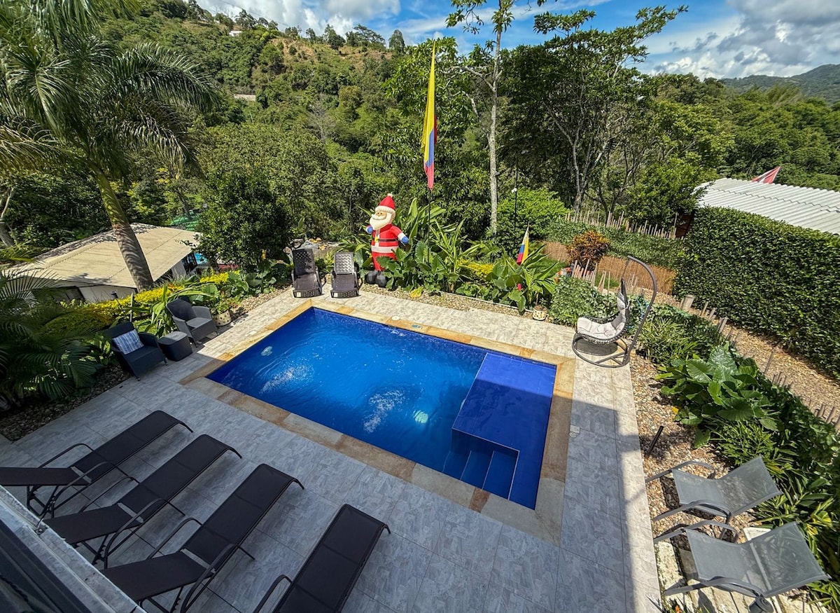 Espectacular casa campestre a menos de 2 horas de Bogotá. Perfecta para descansar, hacer BBQ y tardear en la piscina climatizada. Gran Clima: Templado de día y fresco de noche. VISTA IMPRESIONANTE A MONTAÑAS Y GUADUAL. La casa tiene 3 cuartos muy cómodos con baño y terraza. Además amplia terraza en la piscina y asador con vista increible a las montañas. Y cocina totalmente dotada. Ubicada a 12 minutos del pueblo de La Vega y a 30 minutos de Tobia, un gran lugar para el turismo deportivo.