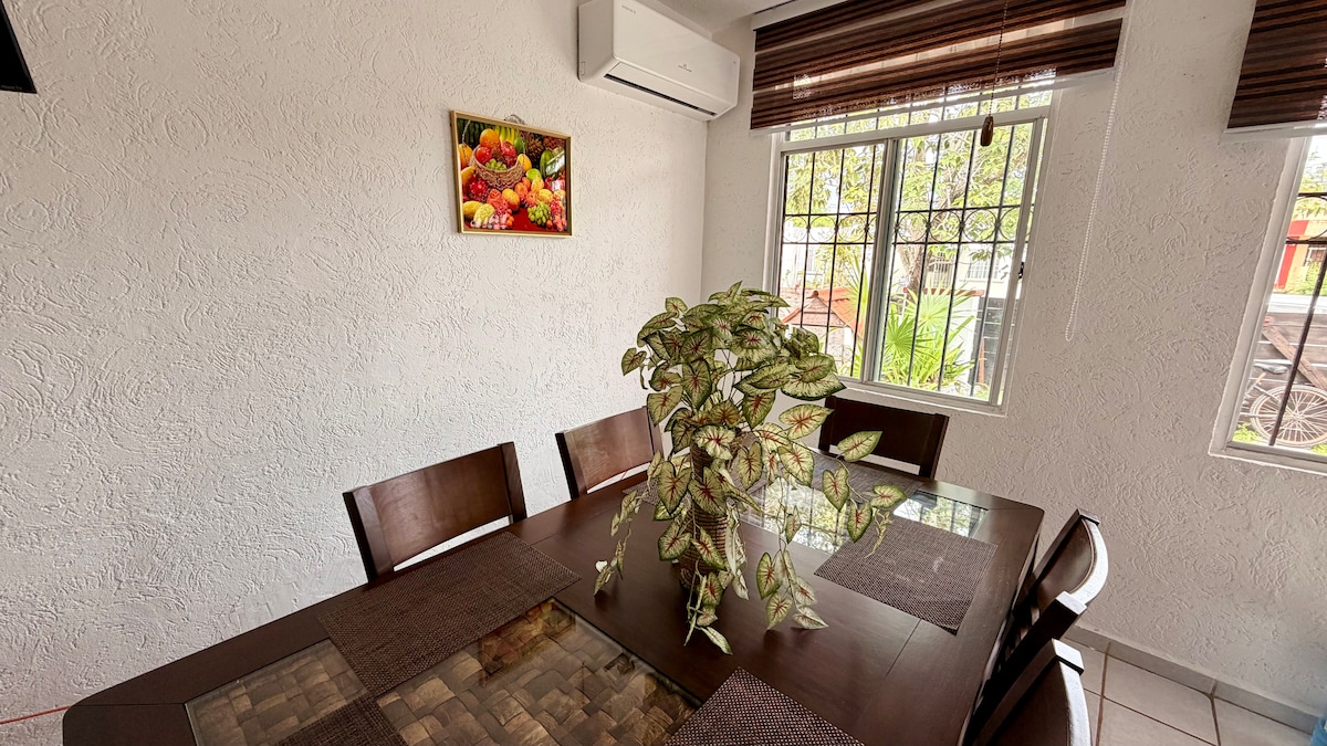 Excelente ubicación 20 minutos del aeropuerto de Cancún (CUN), zona hotelera y Playa del Carmen. A 8 minutos de la playa donde se puede bucear en el segundo arrecife natural más grande del mundo. Cerca tiendas de conveniencia, restaurantes típicos, supermercado, servicio de lavandería, casas de cambio, banco. Cerca de la carretera que lleva a la ruta de los cenotes, Xoximilco, Xcaret, Xelha,Xenses. Bueno para parejas, amigos y familias, ** Internet 15Mb. Recién contratado fibra Optica **