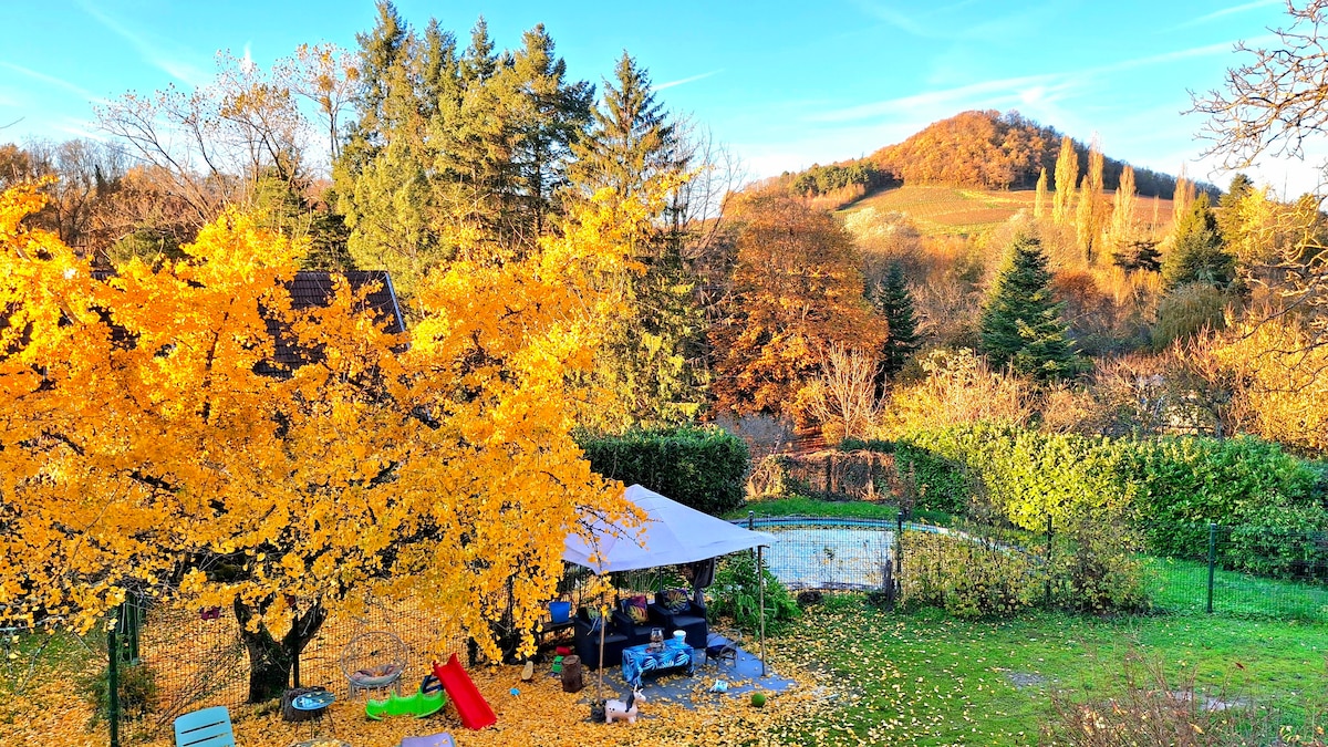 Estudio de 3 camas para 5 personas + bebé con baño y entrada independiente. Cocina + instalaciones, en una hermosa casa antigua , situada en un encantador pueblo de viticultores. Un montón de equipamiento para bebés+ juegos para niños. JARDÍN cerrado equipado Barbacoa plancha de gas (debe limpiarse después de su uso) Mesa / muebles de jardín / tumbonas /columpio/ cenador . Venga a disfrutar de las rutas de senderismo mientras está a 5 minutos de la ciudad de Lons-le-Saunier.