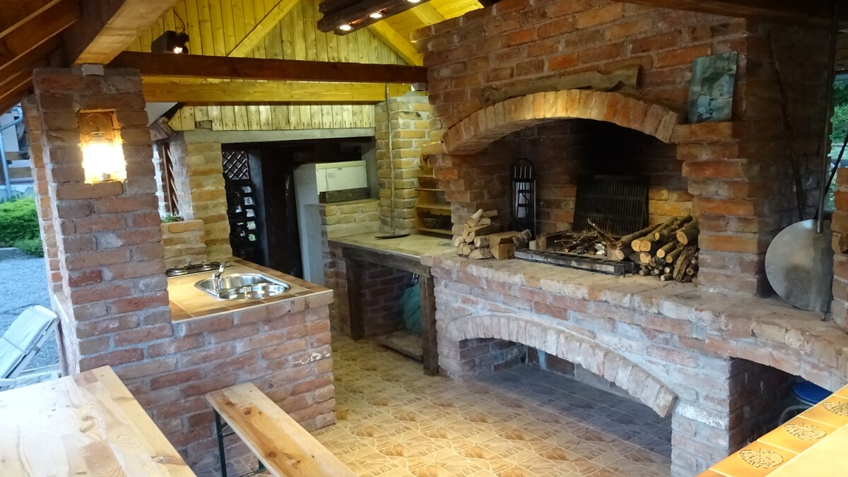 En alquiler hay una hacienda en la naturaleza virgen, lejos de las preocupaciones cotidianas. ¡Disfruta del aire fresco sin industrias cercanas! La propiedad cuenta con dos cocinas,una cocina de verano al aire libre y un amplio comedor. La cocina interior incluye una estufa de gas y una estufa de leña para cocinar y calentar. Hay una gran terraza con hermosas vistas. Te alojarás en una casa de ladrillo rústico y, si es necesario, también puedes alquilar una casa adicional con capacidad para hasta 15 huéspedes, cada uno con su propia cama.