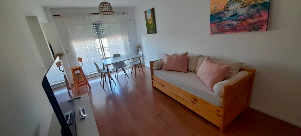 Moderno y luminoso departamento en San Fernando Disfrutá de una estadía cómoda en pleno San Fernando. Pensado para hasta 2 adultos 1 niño, en un edificio moderno con ascensor. Cuenta con una habitación con cama doble, un sofá cama (1,5 mt) cocina equipada y 2 baños completos. Ubicado en una zona tranquila y segura. No cuenta con cochera Wifi, aire acondicionado, calefacción, Smart TV Ropa de cama y toallas incluidas Balcón ¡Te esperamos para que disfrutes tu paso por San Fernando como en casa!