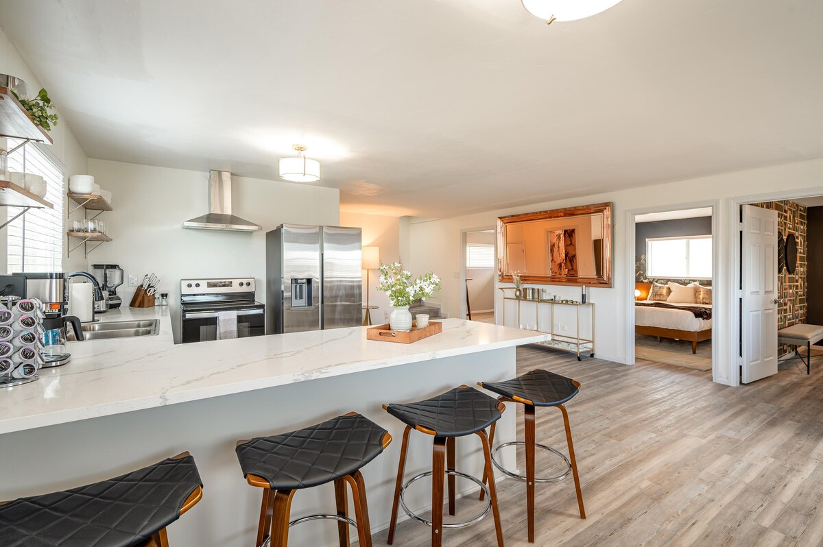 Palm Grove: Luxe King, Wet Room & Chef’s Kitchen