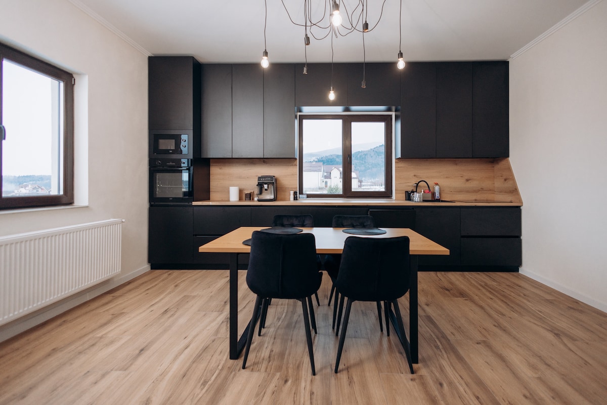 Relájate en esta fantástica villa de madera al pie de las hermosas montañas de los Cárpatos. Dondequiera que mires, verás solo el verde esmeralda del bosque. Déjate penetrar por la tranquilidad y la belleza de estos lugares. Se encuentra en una de las zonas más visitadas de Transilvania, a más o menos una hora en coche del famoso castillo de Drácula. Además, a 4 km hay monasterios para visitar, deliciosos restaurantes y parques de aventura dedicados a todos.