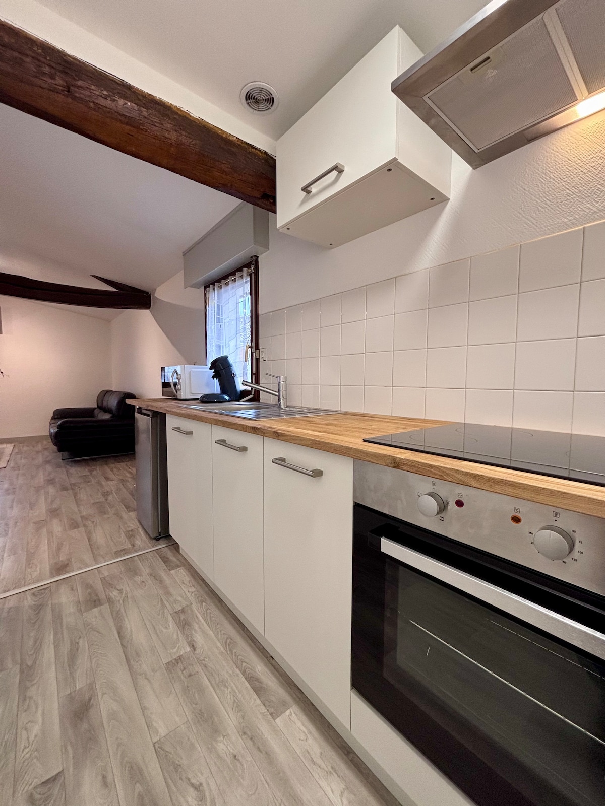 In a typical downtown building, discover a newly renovated apartment that combines modern comfort with a cozy atmosphere. 🌆 Central location: just steps from the train station and all amenities (market, bakeries, restaurants, bars, shops, supermarket, La Barroise) 🧺 Bed linen and towels provided 🔑 Self check-in with secure key box Everything has been designed for a pleasant stay, in a place where you’ll quickly feel at home.