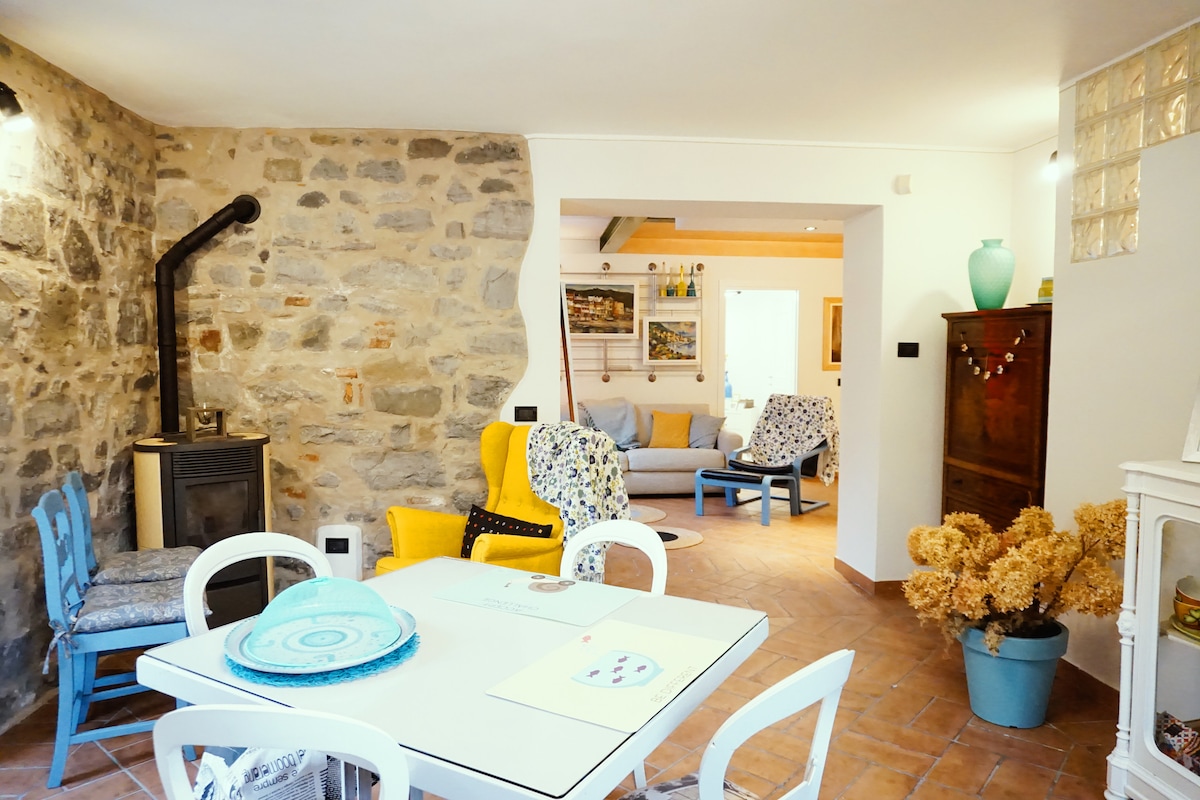 La casa es muy acogedora. Compuesta por un estudio amueblado en estilo moderno con todas las comodidades, una cocina americana y un cuarto de baño con ducha y bañera de hidromasaje. Todo ello rodeado de naturaleza y con la presencia externa de una gran piscina de USO EXCLUSIVO para los huéspedes. La propiedad, al estar cerca del castillo medieval, no es accesible con vehículo propio, utilizamos nuestro coche para llevar a los huéspedes y las maletas. Sin embargo, es un paseo de 200 metros por el verde de la colina.