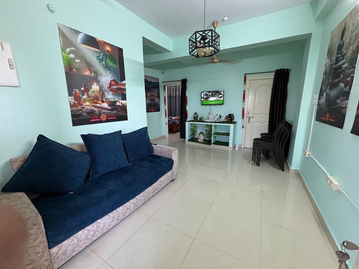 Relax with the whole family at this peaceful place to stay. this 2bhk flat have all amenities where you will have a wonderful beach view from the property and you have an outdoor shower on the terrace it completely suites for family and friends with all luxury amenities