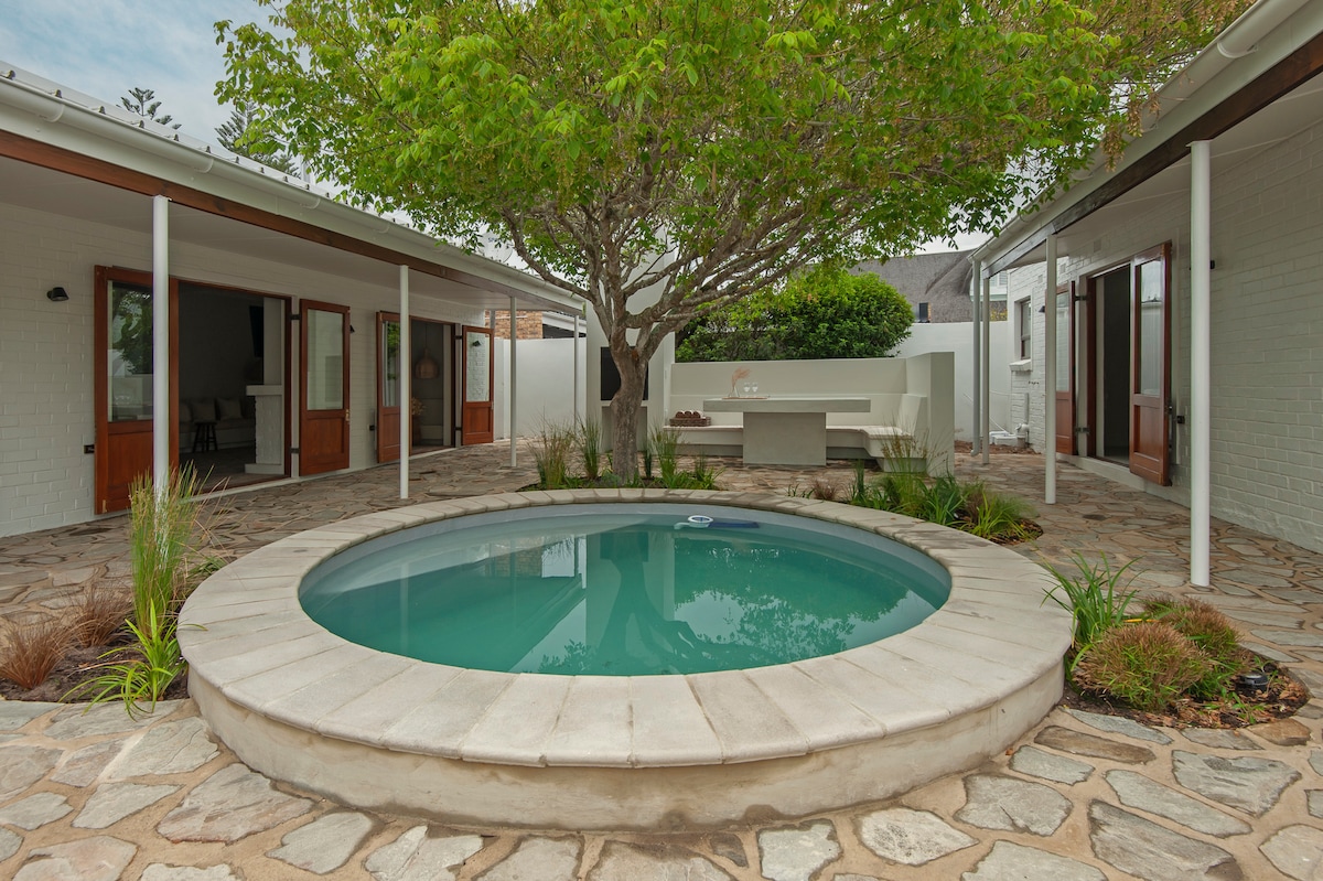 This stylish 5 bedroom, 5 en-suite bathroom beach bungalow provides the ideal setting for a relaxed vacation at the majestic Hermanus coast. While away the hours pool-side, or enjoy the mountain glow at sun-set around the fire-pit with loved ones. Just a short walk to the beach, The Bungalow is what holiday dreams are made of. Enjoy the fire-place & local wine-farms in the winter, or enjoy the outdoor chill areas in the summer-time. Hello poolside barbecues! Solar-powered ☀️