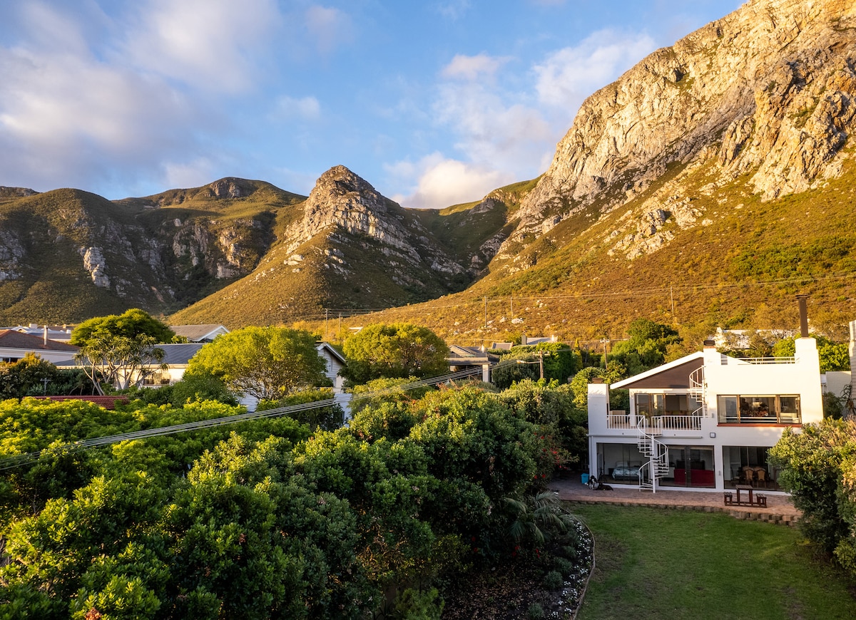 ¡Despiértate con vistas despejadas a las montañas! Esta majestuosa casa en Voelklip satisfará todas tus necesidades. Si amas la naturaleza, esta casa es inmejorable. Vistas literalmente sin obstáculos a las montañas y una fácil caminata de 20 minutos a las 3 presas y cascadas. ¿Prefieres el mar y las playas de primera clase? ¡A solo 20 minutos a pie por la colina hasta el precioso camino del acantilado y un gran surf! ¡El patio cubierto al aire libre con un braai (barbacoa) incorporado es el lugar perfecto para disfrutar de una majestuosa puesta de sol africana!