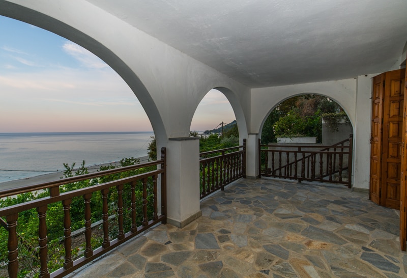 The house stands in the historic village of Portaria Pelion and it is about 500 m. from the central square. It's altitude is 630m., and has a spectacular view to Pagasitikos and the town of Volos. You can enjoy this view not only from the balcony but also inside the house. Furthermore the Ski Centre of Pelion is only 14km. far and the city of Volos 12km. Last but not least the beautiful beaches of Pelion are located in 31km. from Portaria.