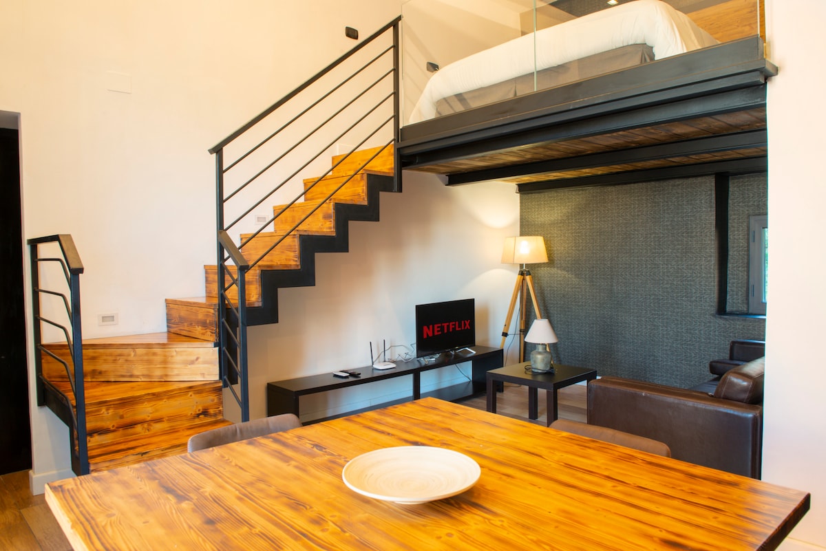 Nuestro ático panorámico se encuentra en la calle más céntrica y famosa de la ciudad y ha sido renovado con materiales elegantes y de lujo como parqué, mármol de Carrara y resina. La belleza de sus altos techos y la calidez de sus diferentes elementos de madera como las vigas, dan al apartamento un encanto atemporal. Además, al caminar por nuestra terraza panorámica tendrás la impresión de tocar la ciudad, el majestuoso Vesubio y el cielo con los dedos.