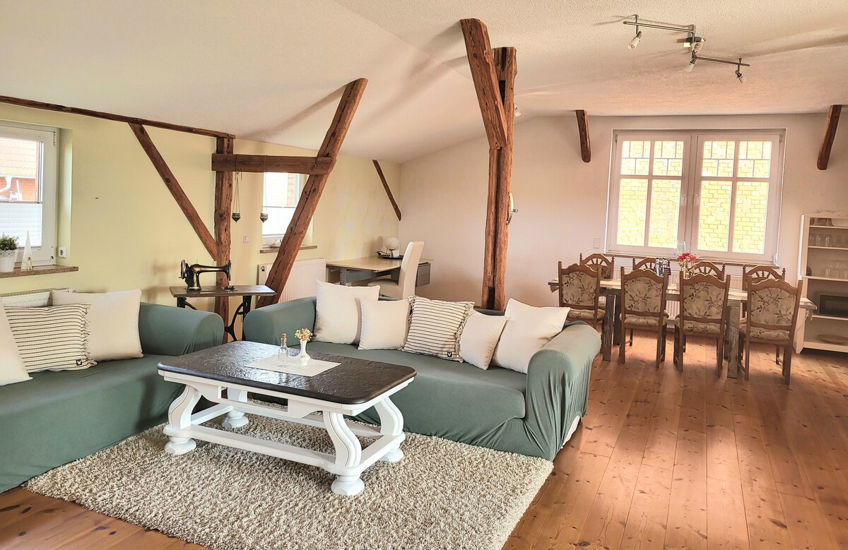 Our small, lovingly renovated 56sqm apartment is part of our old brick house (former bakery) located in a beautiful and nature rich corner of the Uckermark. It is an ideal starting point for small day trips - in the immediate vicinity there are several swimming lakes, bicycle and hiking trails, old villages and many other tourist offers. In our village of Flieth there is a small regional shop with organic products from local farmers and a nice pub with a beer garden.