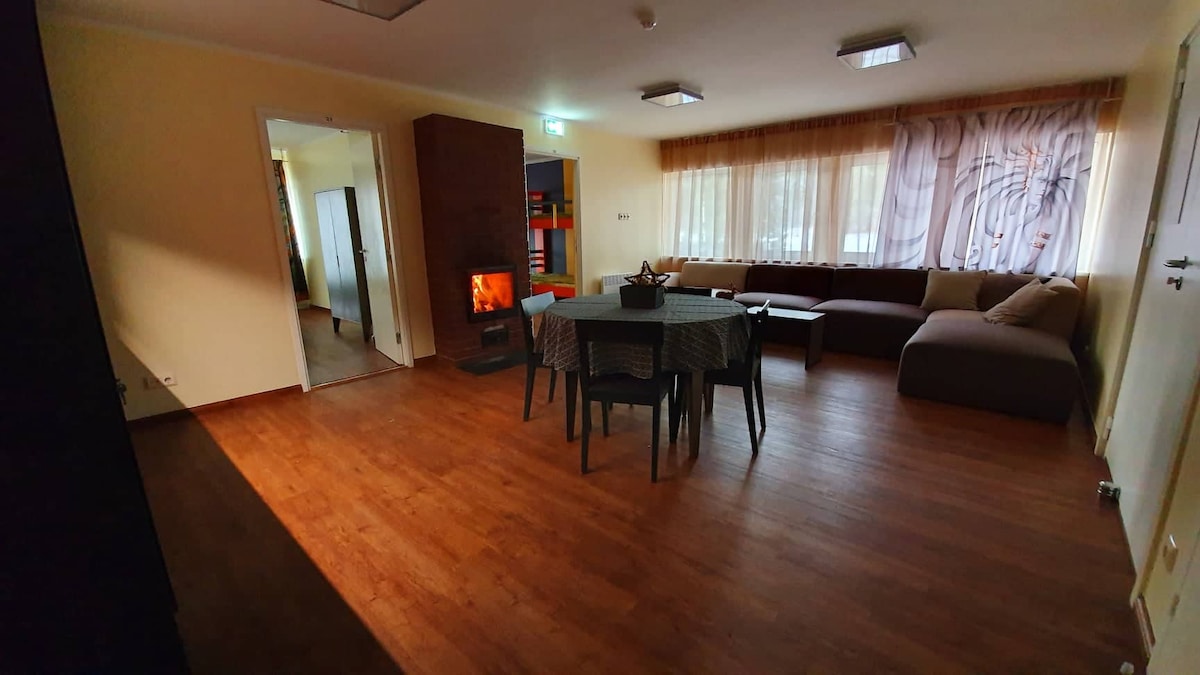 Beautiful log house in Otepää city centre and near Tehvandi stadium. Perfect location to go skiing, walk to supermarket or restaurants. Only 2,5 km to Pühajärve beach. On the first floor we have open living room with kitchen and soapstone fireplace. There is also 1 bedroom with 2 beds, bathroom, sauna and toilet. On second floor we have 4 bedrooms with 9 beds, bathroom with toilet and storage room. House is very suitable for athletes, locating near by Tehvandi Stadium.