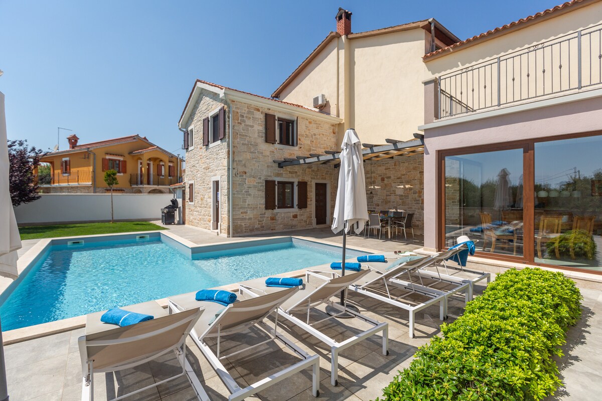 Auténtica casa de piedra Istriana construida en 1922. Esta casa está totalmente renovada y equipada para proporcionarle todo lo que necesita. Moderno interior, cocina totalmente equipada, sala de estar relajante, amplias habitaciones con baño privado, un comedor al aire libre con parrilla, piscina privada y estacionamiento en la propiedad. Cada habitación está cuidadosamente diseñada por nuestro diseñador. Todo esto le permitirá disfrutar de sus vacaciones y llenar sus baterías.