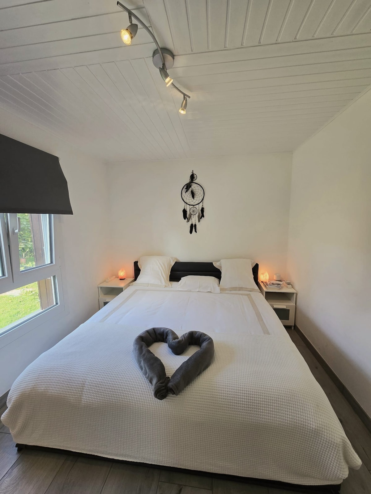 La construimos para nosotros con el corazón, esta pequeña casa. Se encuentra cerca de nuestra casa residencial, pero goza de una vista despejada y preserva su privacidad. Se sentirá como en casa. Se sueña mirando la vista, el recorrido del sol, en una de las terrazas o junto al fuego. Para desconectar, descubrir la Gruyère, aislarse para teletrabajar, escaparse en pareja... Lo más difícil es irse. En JULIO y AGOSTO, alquileres de sábado a sábado. 😊