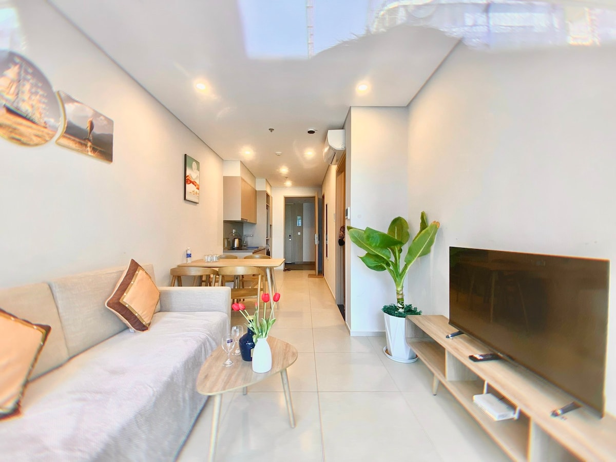 Utilizarás todo el apartamento con 2 dormitorios y 1 wc. Hay mucha luz natural, aire fresco y agradable para ayudarte a relajarte. - Hay tiendas de conveniencia, cafeterías y restaurantes en el lugar. Servicios gratuitos para los huéspedes: - Piso 36. La piscina infinita crea la sensación de estar a la deriva entre el cielo y el mar. Para adultos. - Piscina y parque acuático para niños en el quinto piso. - Biblioteca, estudio y área de juegos infantil interior en el cuarto piso. - Jardín en la azotea con muchos árboles verdes, espacioso.