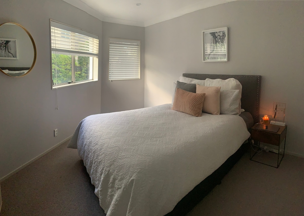 Totalmente separada del espacio para anfitriones, esta suite forma parte de una nueva villa monolítica de dos pisos con patio cerrado, comunidad segura, aislada y amable. La villa está ubicada en Pakuranga Heights en el lado este, transporte muy conveniente, la estación de autobuses está justo en la puerta, la autopista está a 20 minutos, el centro de la ciudad y el Museo de la Guerra de Auckland están a 15 minutos, la bahía de media luna está a 7 minutos, el parque Lloyd Elsmore está a solo 3 minutos en coche, donde puedes disfrutar de sol, senderos, natación, gimnasio, piscina de patos y parque infantil, junto al centro comercial Highland Park, el gran supermercado extranjero y el supermercado chino.El centro comercial Pakuranga Plaza más cercano se encuentra a solo cuatro minutos en coche, con un mercado nocturno todos los sábados a las 6:00 p. m., a ocho minutos en coche del centro comercial Botany Downs y a 10 minutos en coche del centro comercial Sylvia Park. Esta suite tiene 2 dormitorios, 1 sala de estar y 1 baño. Está equipado con una pequeña cocina con cocina sencilla. La habitación está equipada con aire acondicionado, TV HD, nevera solo para huéspedes y wifi de fibra óptica gratuito. Hay un gran número de plazas de estacionamiento gratuitas en la carretera.Ropa de cama nueva, lavada después de la salida de cada huésped para garantizar que la habitación esté limpia y ordenada, también tenemos leche, pan, cereales, café, té, frutas como desayuno para los primeros tres días de estancia.La lavandería está en el lado del propietario y estamos abiertos cuando sea necesario.