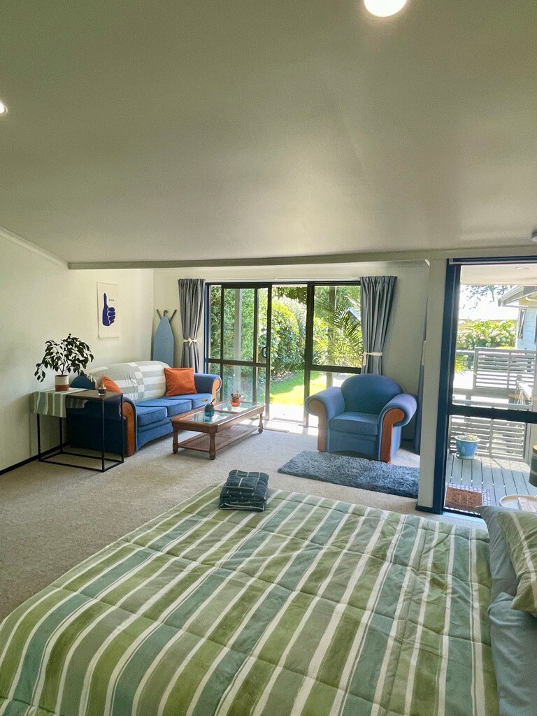 Estoy seguro de que muchos de vosotros necesitaréis un descanso, así que... si buscáis un espacio tranquilo y privado para vuestra visita al hermoso monte Maunganui, el recientemente renovado Beachside Retreat ofrece justo eso y más. El estudio es perfecto para parejas tranquilas, viajeros solitarios y personas de negocios. Seguro y protegido, el estudio está bañado por el sol de la mañana y de la tarde, por lo que es acogedor y cálido. Bomba de calor para tu comodidad en cualquier época del año. La hermosa playa de Mount está justo al otro lado de la carretera. Equipo de playa disponible bajo petición. Perfectamente situado para ir caminando a la ciudad o parar en el camino en algunos de los mejores cafés y restaurantes. De vuelta al estudio, pasarás de la gran terraza a través de puertas correderas de vidrio a un interior diseñado para la relajación total. Refréscate en un baño blanco reluciente y sumérgete en una bañera de diseño antes de acostarte. Cocina americana para preparar té y café, microondas y nevera pequeña. No hay placa de cocción. A tu llegada hay una selección de tés, café, chocolate caliente, cereales, leche y zumo de Nueva Zelanda en el estudio. Estacionamiento en el lugar disponible para un auto. Televisor inteligente de pantalla grande con Netflix, Amazon Prime y la transmisión habitual gratuita al aire. Wifi ilimitado de alta velocidad. A cinco minutos a pie de las tiendas Central Parade, el restaurante Fife Lane, la cafetería y tienda Tay Street, Bay Oval y Blake Park. También a cinco minutos en coche de Bayfair y Baypark. Limpieza y desinfección mejoradas entre huéspedes según las pautas de Airbnb. Aparcamiento disponible en el sitio. Nosotros (Shirley y Jim) vivimos arriba con nuestro perro pequeño Louie. Estamos cerca si necesitas ayuda, deseas desayunar, cenar o recibir consejos turísticos. De lo contrario, respetaremos tu privacidad y te dejaremos disfrutar de tu estancia. El estudio está en Marine Parade, justo enfrente de la playa de Mount Maunganui. Blake Park, Bay Oval y varias tiendas y excelentes cafeterías en Central Parade están a unos 5 minutos a pie. Está a poca distancia en coche del monte, el aeropuerto, el centro comercial Bayfair y el Trust Power Baypark. A solo una hora en coche de Whakatane, Rotorua y Hobbiton. Los horarios de llegada y salida se pueden ajustar para adaptarse a tus planes de viaje a petición. También puedes solicitar el depósito/almacenamiento de equipaje.