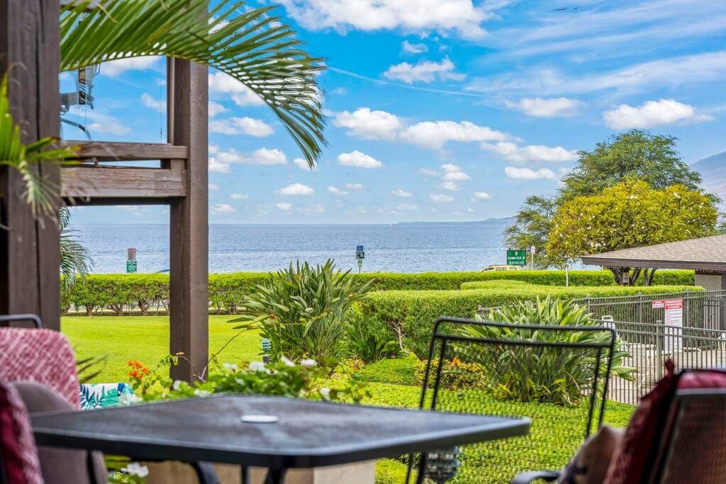 Take a moment to unwind and appreciate the stunning views from the patio, where you can spot whales from Nov-April and catch a glimpse of surfers riding the "Freight Train" during mid-summer. Venture out for a leisurely walk to Maalaea Harbor Shops and the Maui Ocean Center, or explore with a drive to Lahaina (West), Hana (East), or Wailea (South tip). Enjoy delightful amenities including Heated Pool, Oceanfront BBQ station, and Lounge area on the lawn. Designated parking right out front.