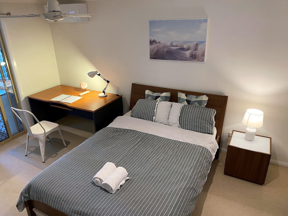 Raro hallazgo en este deseable barrio, entorno tranquilo, casa de huéspedes moderna. A 2 minutos del complejo deportivo Sleeman, a menos de 20 minutos del aeropuerto de Brisbane y a 8 minutos de los centros comerciales Westfield Carindale y Capalaba. Ideal para aquellos que necesitan estar cerca del centro deportivo pero disfrutar de privacidad y un entorno tranquilo. 2 dormitorios, 1 cama tamaño queen, 2 camas individuales tamaño king. Se pueden unir para hacer una cama tamaño queen. Ambas habitaciones tienen armarios empotrados y baño moderno. Cocina/sala de estar, amplio balcón.