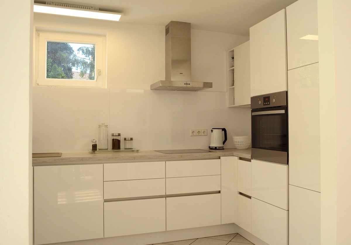 Moderna casa de madera de diseño con impresionantes vistas al viñedo y a la valle del Rems. El apartamento está situado en la planta baja de una casa unifamiliar y tiene una entrada independiente desde el exterior. A 15 minutos en coche de Stuttgart Mitte y a 20 minutos en tren suburbano. El alojamiento El apartamento dispone de un equipamiento de alta calidad. Cocina abierta, sala de estar y comedor. Una terraza exterior muy grande te invita a quedarte. Todos los equipamientos del apartamento están disponibles