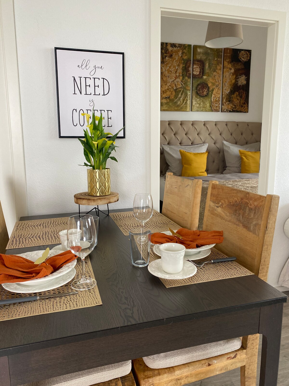 El lema es «como en casa, aunque sea temporal». Para todos aquellos que trabajan en la región y les gusta tener sus «propias cuatro paredes» a su alrededor. Volver a casa por la noche, relajarse y descubrir la región de vez en cuando. Ya sea en coche o en transporte público. La ubicación es ideal. También es adecuado para unas cortas vacaciones para conocer la región del barroco y el vino. Una pequeña terraza te invita a tomar el sol por la mañana.
