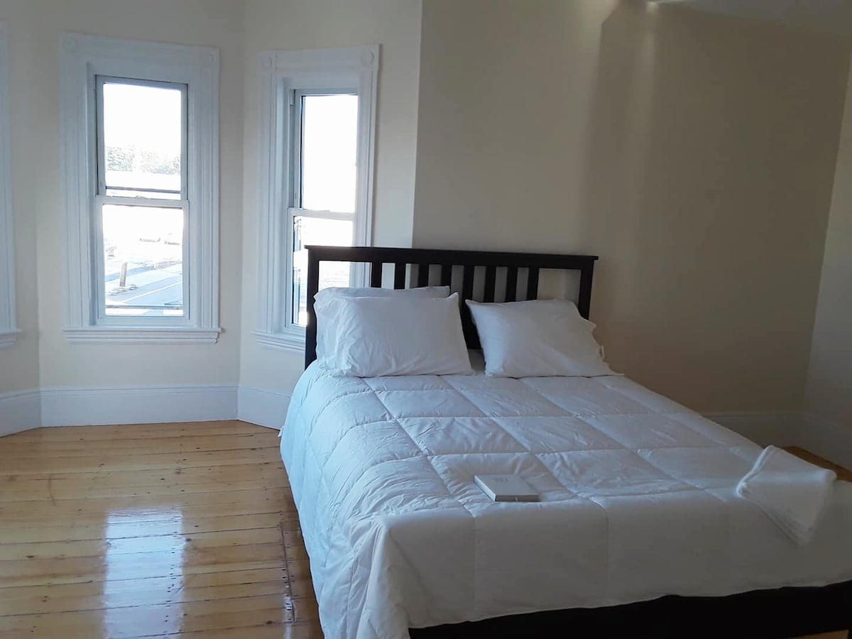 Built in year 1832, formally the Frost High School and Waltham's Town Hall. This urban townhouse has lots of exposed detail and original plank hardwood floors. The first floor has a modern kitchen, open layout, a large bedroom with cathedral ceilings and a king size bed, also the first floor bath features a 4-ft wide shower. The second floor you’ll find a large bedroom with a queen bed. Parallel to that, the suite, comes with a king size power adjustable bed, laundry room and master bathroom.