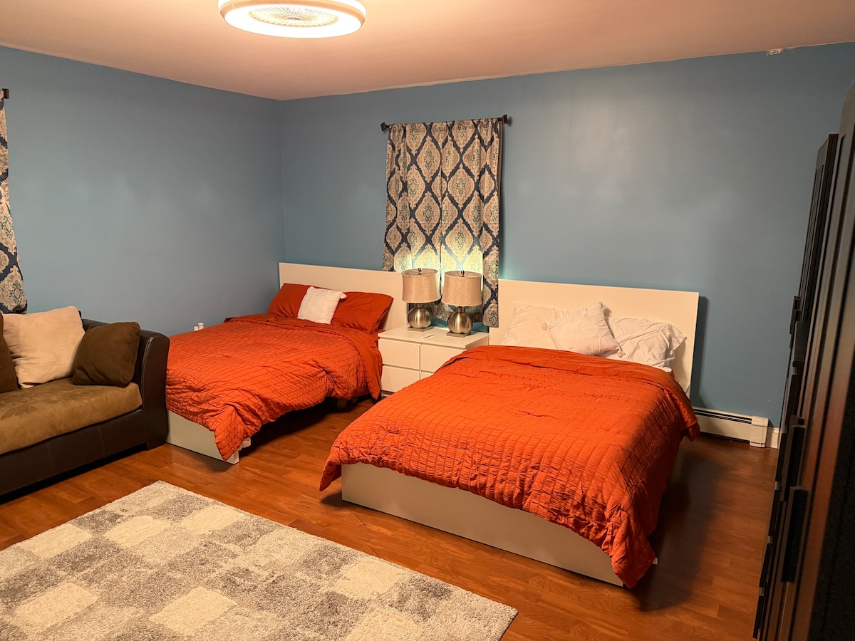 Relax with family or friends in this 2 bedroom room elegant and comfortable including a TV in each room, This is is a recently renovated apartment with a full bathroom, Plenty private parking space on premises Located in the heart of Waltham, just a few blocks away from the vibrant Moody st, filled with a variety or restaurants. 10 minutes away from Bentley University, Brandeis University and La Salle college. Near public transportation. 20-25 minute drive to Boston. Charles River 2 blocks.