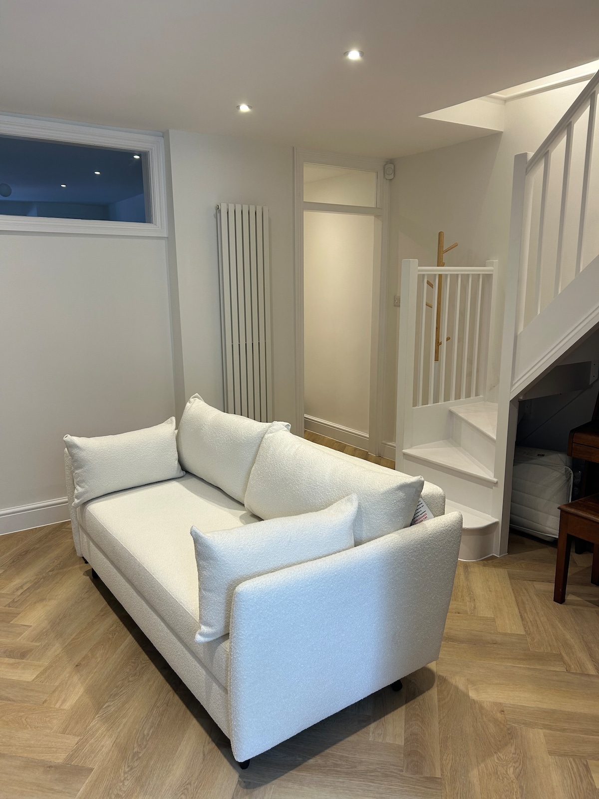 Accessed through a charming Victorian family home. This bright and intimate apartment offers a stylish retreat with a chic, monochromatic interior. Thoughtfully designed with impeccable attention to detail, the space features beautiful tiled finishes bathroom, graceful arched doorways, and characterful stripped wooden floors. Step outside to enjoy the sunny shared terrace — a perfect spot to relax and unwind in style.