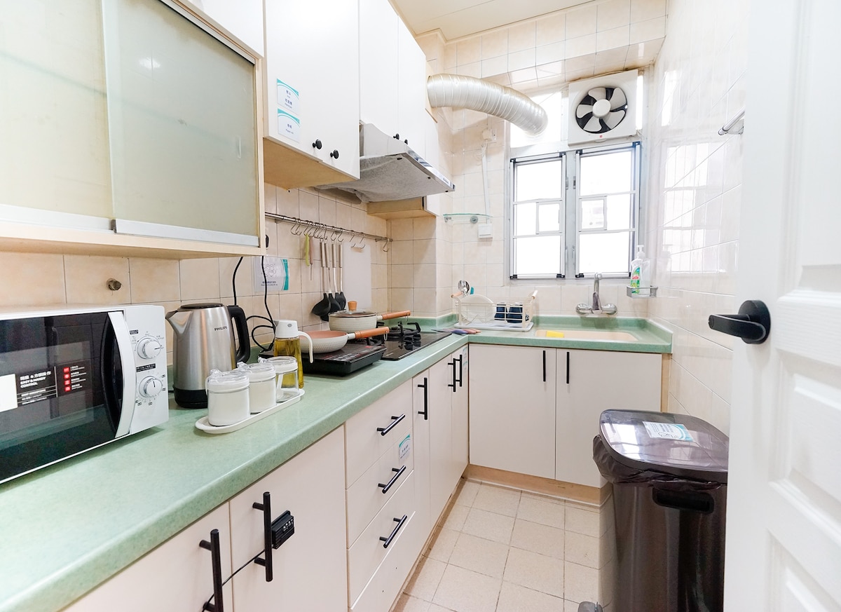 A 2 minutos a pie de la estación Causeway Bay MTR y Times Square. Centros comerciales numéricos cercanos - Times Square - Hysan Place - Sogo Raro departamento de 3 dormitorios para familias/grupos. - Un dormitorio con cama matrimonial (120 cm) e inodoro. - Un dormitorio con cama matrimonial (130 cm). - Una habitación con un solo colchón inflable. *Cocina totalmente equipada. * Sofá grande en la sala de estar *Última SmartTV con Netflix/youtube/Disney+ (cuenta no incluida) *2 inodoros separados.
