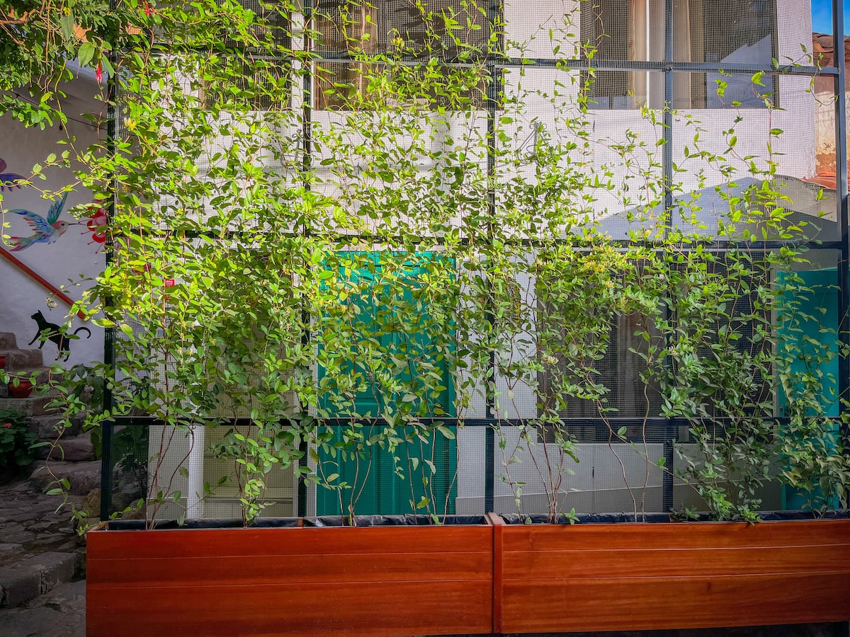 Bienvenidos a nuestra acogedora cabaña, un refugio encantador con amplio jardín ubicado a solo 15 minutos caminando del vibrante centro histórico y la Plaza de Armas. Disfruta de la combinación ideal de tranquilidad y conveniencia en este hermoso alojamiento, perfecto para familias, amigos o parejas en busca de una escapada romántica y relajante.