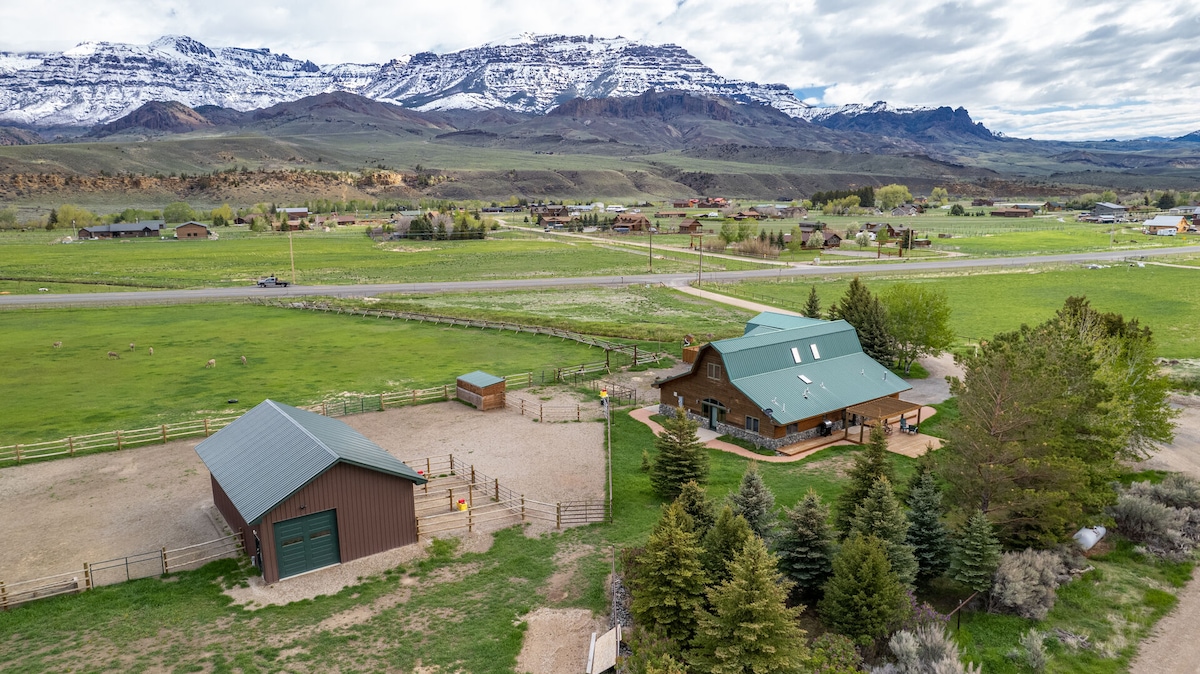 Disfruta de la escapada perfecta en una cabaña totalmente nueva en un rancho de 18 acres. Disfruta de vistas de 360 grados desde el interior de la cabaña de las montañas Absaroka que rodean la propiedad. Ubicado en la bonita ciudad de Wapiti, Wyoming. Conduce por las 52 millas más pintorescas de Estados Unidos hasta llegar a la entrada este de Yellowstone, que está a solo 32 millas de la casa. Un destino perfecto para cazadores, excursionistas, pesca, motos de nieve, esquí/tirolina. Puedes traer tu propio caballo por 50 dólares la noche, que incluye agua y heno.