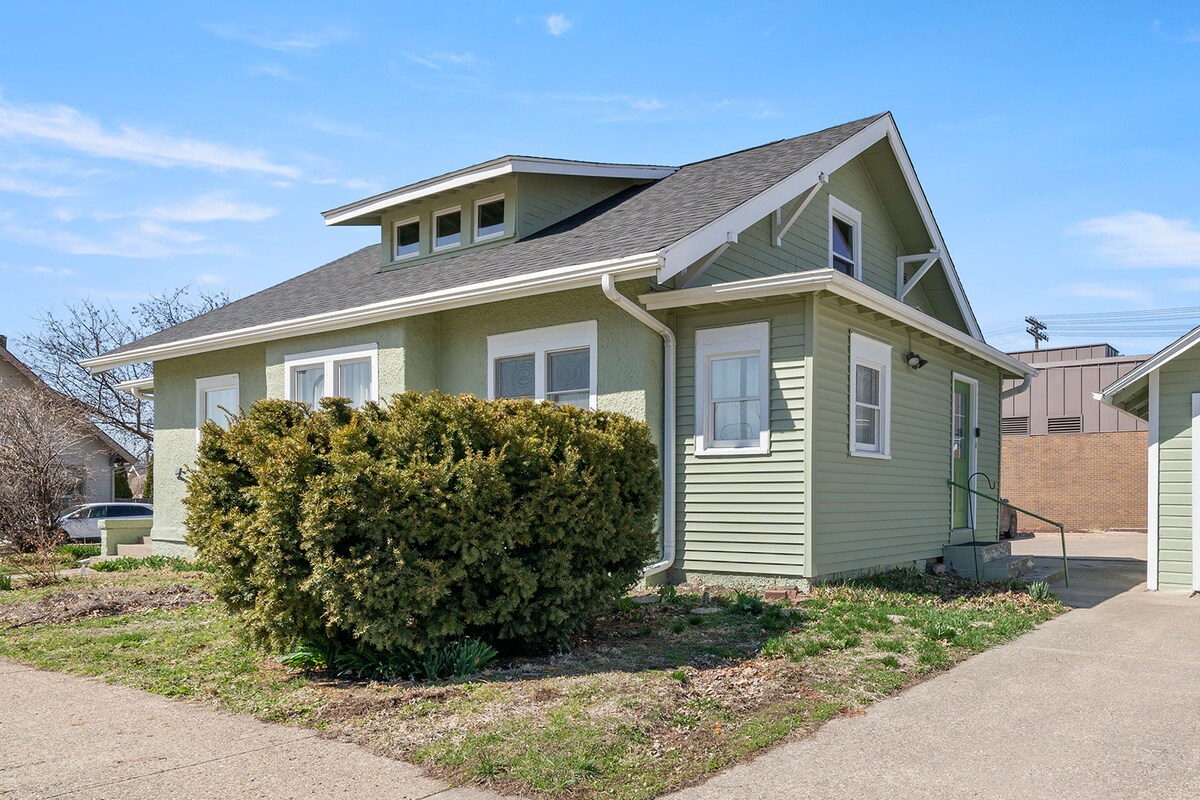 This 1910 PET FRIENDLY bungalow is full of charm and unique art. Just a couple of blocks to the town square for restaurants and shopping. In the summer you will enjoy the quaint front porch and backyard patio full of colorful flowers nice for outdoor dining. The fenced backyard is perfect for bringing your dog. Small dogs 25 pounds and under require a one time $50 pet fee and dogs larger than that are up for discussion. Close to Buxton Park for scenic walks.