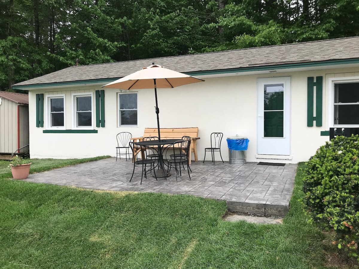 Eficiencia de entrada privada unida a una casa unifamiliar situada lejos de la carretera, con un porche delantero rodeado de bosques para que disfrutes. La unidad está completamente amueblada y cuenta con servicios de lavandería disponibles para estadías largas. Con microondas, cocina de inducción y heladera, es un lugar perfecto si te quedás en la zona por trabajo o de visita durante el verano, cuando una habitación de hotel no es suficiente.