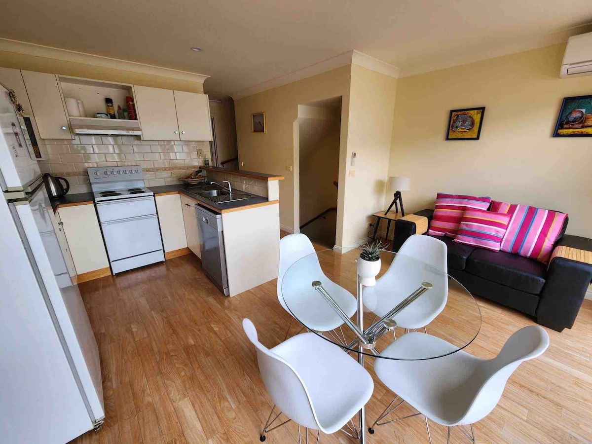 Tus anfitriones Evan y Sue te invitan a disfrutar del ambiente tranquilo y relajado de la hermosa Port Campbell, ya sea una estancia de una noche o más en nuestro apartamento octogonal Beach House, amueblado de forma inmaculada, en el nivel inferior. * Gran terraza al aire libre con barbacoa para tu disfrute. * Vistas de 180 grados de la playa, los acantilados, el mar y la campiña. * Solteros y parejas bienvenidos. Máximo de huéspedes: 2 * Evan y Sue residen en el apartamento superior, que está totalmente separado y respeta tu privacidad.