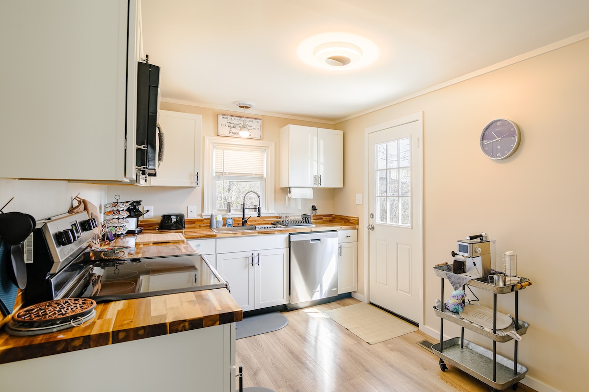 The Cottage at The Grange se encuentra en el tranquilo río Potowomut. Es una hermosa casa recién renovada de 2 dormitorios (1 cama tamaño king y 2 camas individuales) y 2 baños completos con todas las comodidades y servicios modernos que se esperan de un alquiler de lujo a corto plazo, manteniendo el encanto histórico de esta finca colonial. Prepara una comida gourmet en la cocina abastecida o haz una barbacoa en la terraza. Situada en 11 acres prístinos, disfruta de canchas privadas de tenis/pickleball, acceso en kayak a la bahía de Greenwich y mucho más.