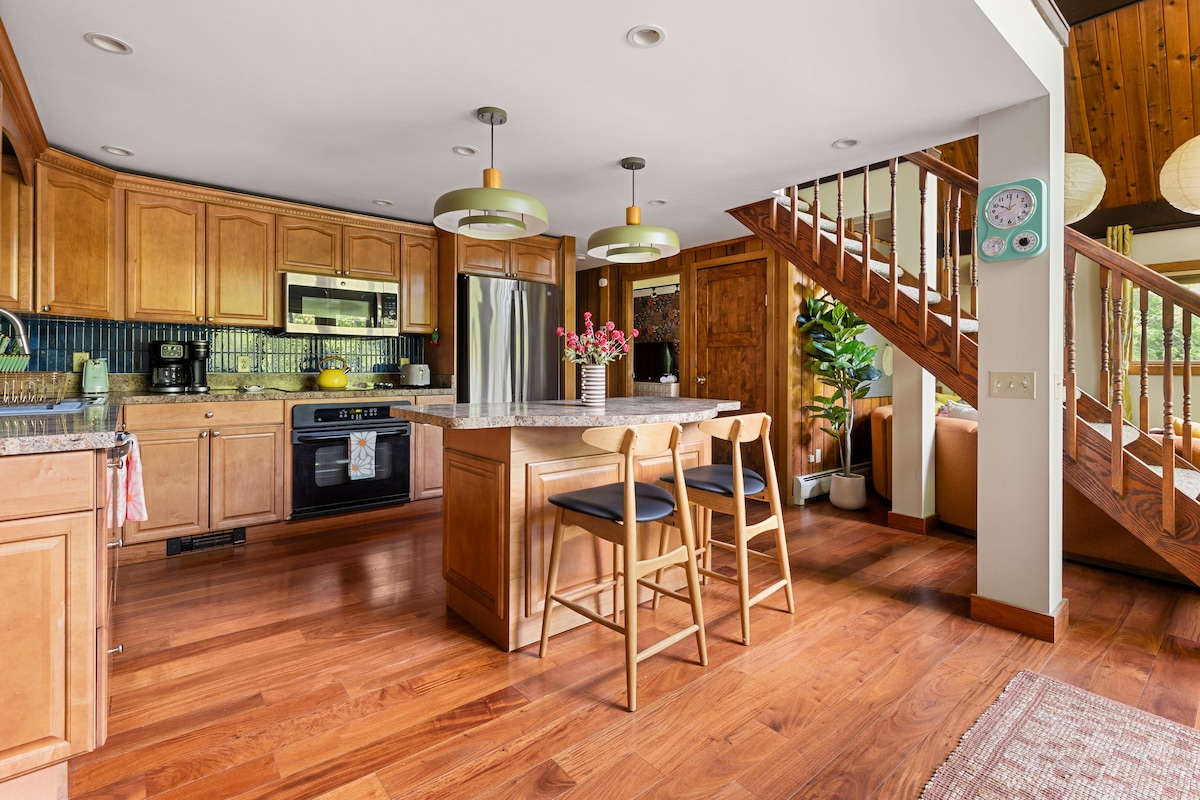 Disfruta del hermoso Mad River Valley mientras te hospedas en The Mad House, un clásico chalet de esquí de Vermont en Waitsfield, VT. Idealmente ubicada a menos de 4 millas de Sugarbush Resort + Mad River Glen, esta espaciosa y encantadora casa retro y orientada a la familia tiene capacidad para grandes grupos para tus vacaciones de esquí o escapadas de fin de semana. Fácil acceso para hacer senderismo, ciclismo, golf, tenis, observación de hojas, natación y muchos lugares para bodas locales, como el cercano Inn at the Round Barn Farm, entre otros en la zona de Waitsfield/Warren.
