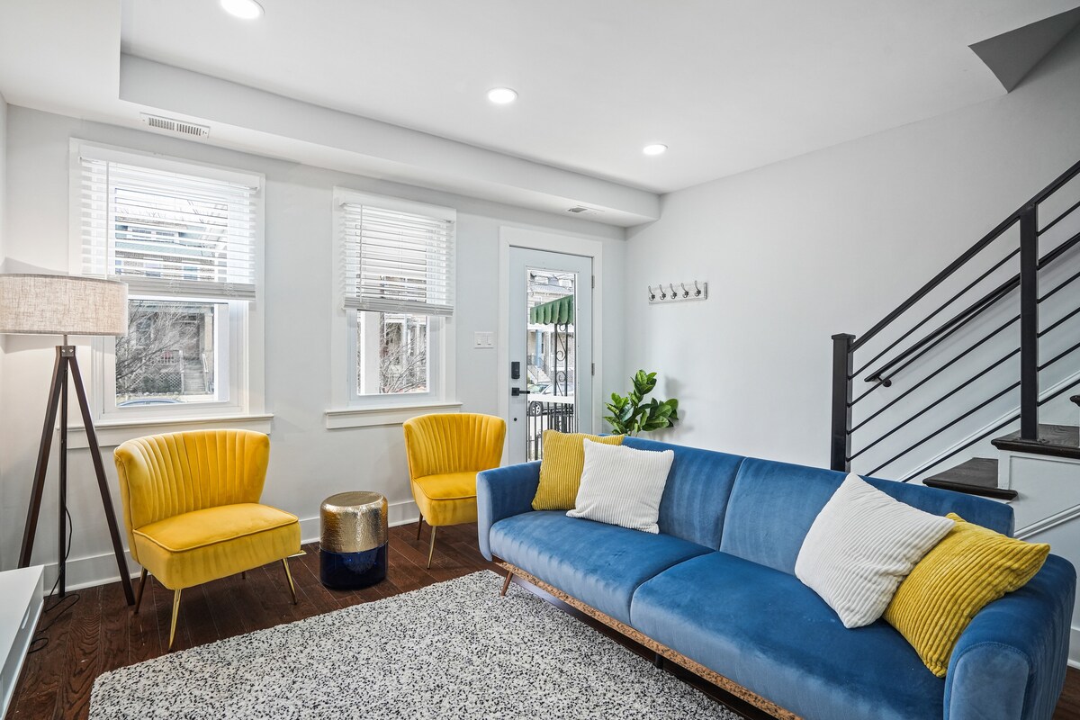 Luxury 4BR/5BA townhouse in the heart of Shaw—just a short walk to the Convention Center and Shaw/Howard Metro. Two fully self-contained units offer privacy and flexibility for large groups, families, and business travelers. En-suite bath in every bedroom plus 2 full kitchens and 2 large living/dining floors. Enjoy high ceilings, marble baths, and a prime DC location steps from restaurants, nightlife, and top attractions—perfect for conferences or exploring the city like a local.